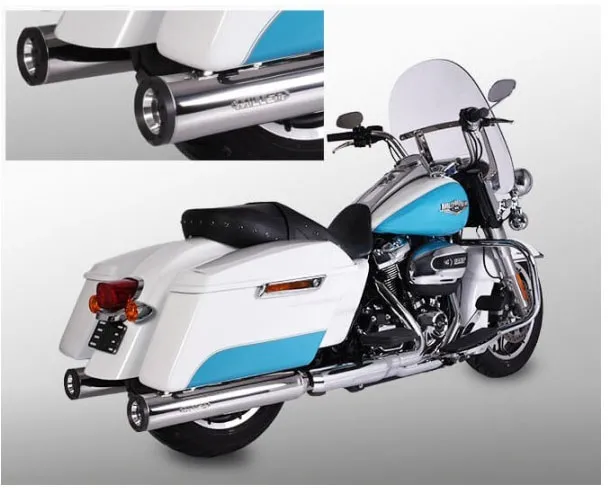 ×- With EC type approval (Euro 4 EC-BE) - Slip-on Polished stainless steel muffler set - With Standard style Matte Black end caps - Muffler diameter 102mm - Mufflers & end caps come in a polished or extremely heat-resistant matte black finish - End caps available in 3 stylings - With removable dB killer - With installation hardware - Made in Germany Slip-on stainless steel mufflers. With EC type approval for the specific models as mentioned only. Streetlegal throughout the EU, for a no hassle ride but still providing the unmistakeable full H-D sound. The dB killer is removable, for maintenance. Compatible with the stock head pipes, making it a quick slip-on installation. Complete with all required installation hardware.Note: The official CH certificate (DTC/FAKT) for Switzerland can be ordered separately with MCS# 719965 (extra charge).For ordering the certificate, please have the information from the Swiss vehicle license ready.