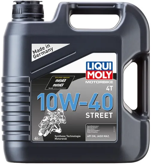 ×Language label D-booklet. Semi-synthetic motor oil (mineral oil blended with full synthetic oil) for a cost-effective maximum quality. Quality motorcycle oil developed for air- and water-cooled 4-stroke engines, which work on normal to heavy duty conditions. Suitable for a sportive riding style. Compatible with dry and wet clutches. Okay for catalysts. - Performance level: API SN PLUS, JASO MA2 - keeps engine clean - excellent shear stability - low oil consumption - excellent for wet clutches - high wear protection - catalytic converters tested - optimal aging stability - optimal lubrication under all conditions