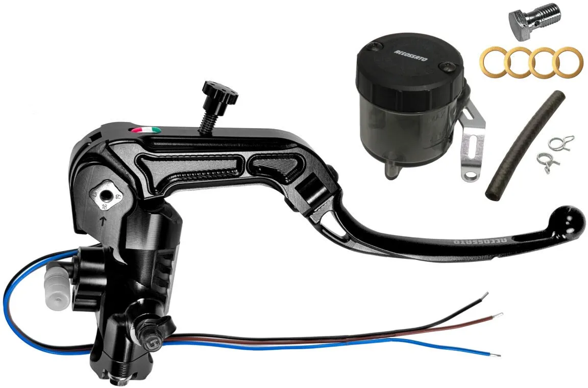 • Accossato Ready to Brake - Clutch Master Cylinder is the evolution of all the masters on the market: the passive stroke of the braking process is massively reduced, in all distances, without any adjustment needed, making this Master Cylinder the Most "Ready to Brake" ever. Its Shark Design makes it unique in its style. Its fixing riser, not only it is offset to reduce the movement of the master cylinder during the braking process but it also has a quick release jumper.