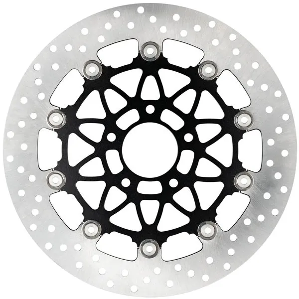 Accossato brake rotors are precision machined high performance floating discs to fit standard 5-bolt H-D hubs.