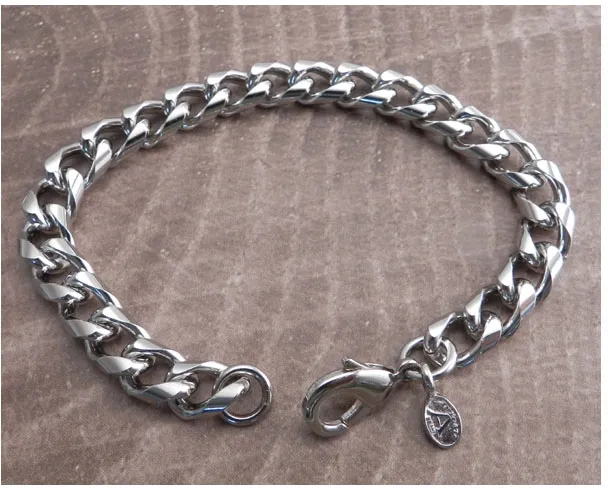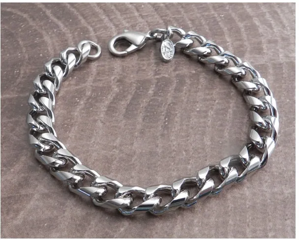 ×Silver, medium-weight chain with ''lasered'' links, chrome-plated steel, with Lobster Claw closure, chain links 1/2" length by 5/8" width