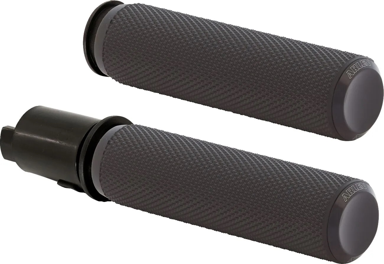×Knurled grips feature a knurled rubber grip area for great hand traction and a billet end cap for a clean custom look.
