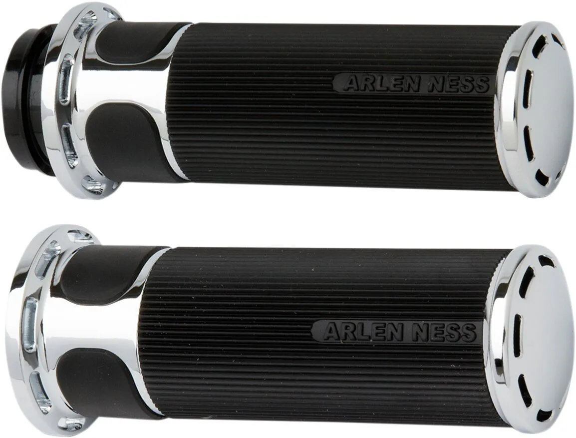 Arlen Ness Slot Track Fusion Grips in Chrome Finish For 1974-2022 Harley Davidson Motorcycles with Single Or Dual Throttle Cables (07-300)