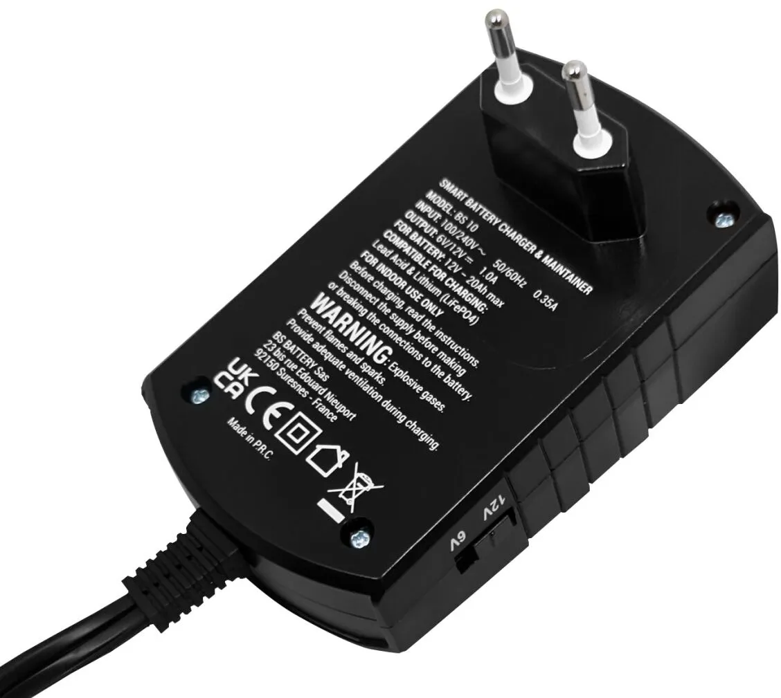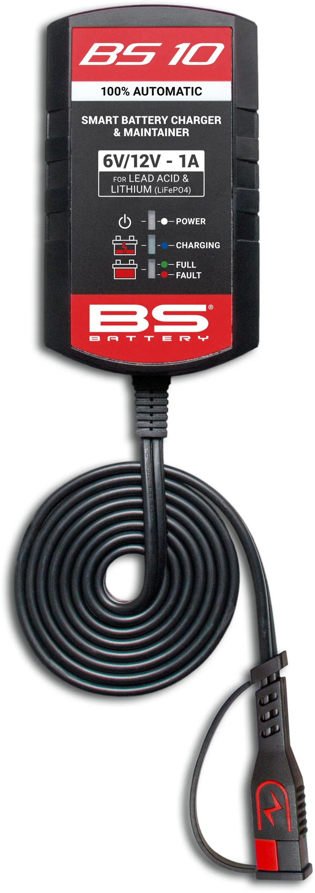 Designed for lead acid & lithium batteries, BS Charger BS 10 is an automatic 6V/12V smart battery charger and maintainer rated at 1A. Road trip friendly, light & compact, it is suitable for batteries up to 20Ah.