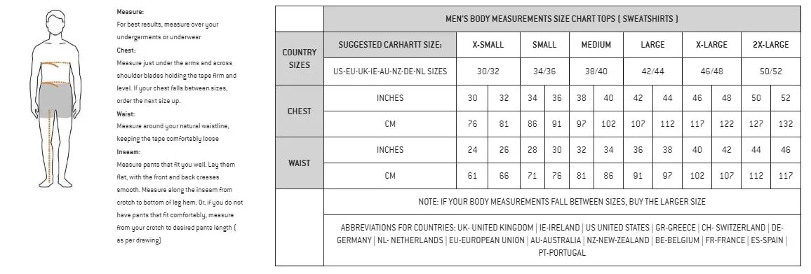 ×Cut the morning chill with this hoodie. A traditional cotton blend makes for versatile layering. Carhartt durability and familiar hoodie comfort mean you can strap on your tool belt or relax with equal ease. A midweight cotton blend, 50% cotton 50% poyester 10.5 oz/yd² - 356 gsm, offers everyday versatility. Roomy for a comfortable fit, allows for maximum range of movement. Take the next size down if you prefer a closer fit to the body. Available in different colors.