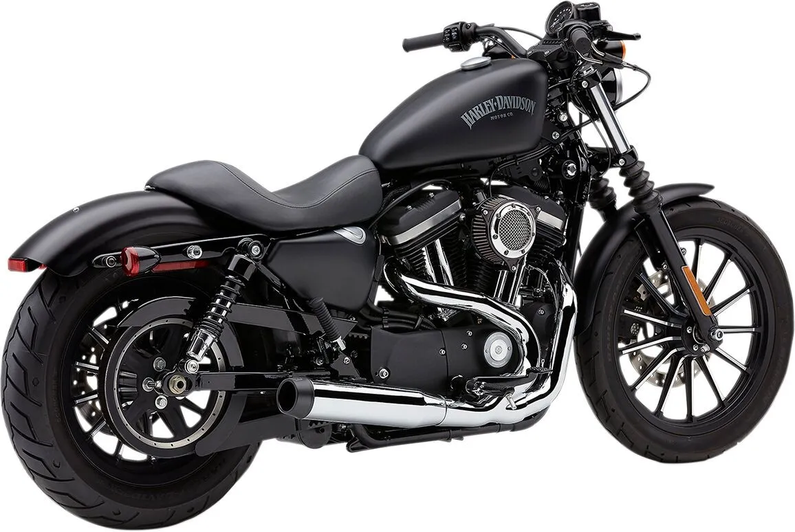Cobra's new upswept 2-into-1 for Dynas and Sportsters uses equal length headers, mated to a cone megaphone muffler.