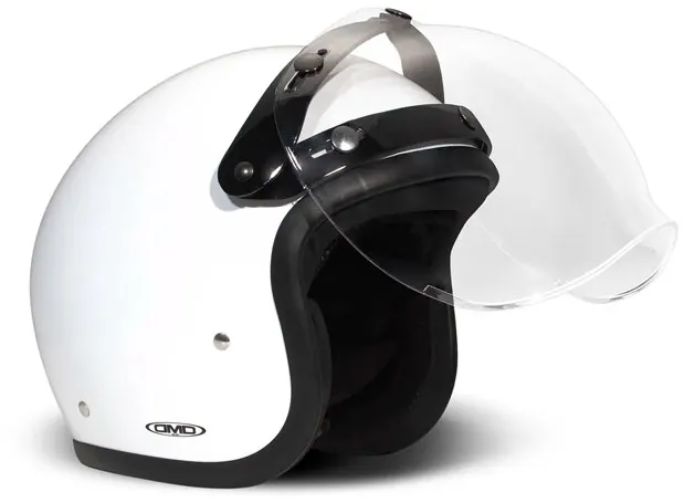 ×The Flip-Up bubble visor is designed for DMD Jet motorcycle helmets, applicable through the presence of buttons on the helmet shell itself. It also can fit on other brand helmets with a three button point. This visor can be raised and lowered at any time. The Flip-Up visor for open face helmets is available in several colors.