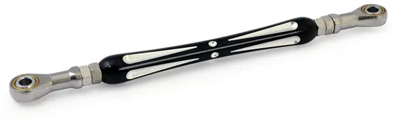 Black anodized, aluminum, length 10 1/4 to 10 3/4 inch center hole to center hole