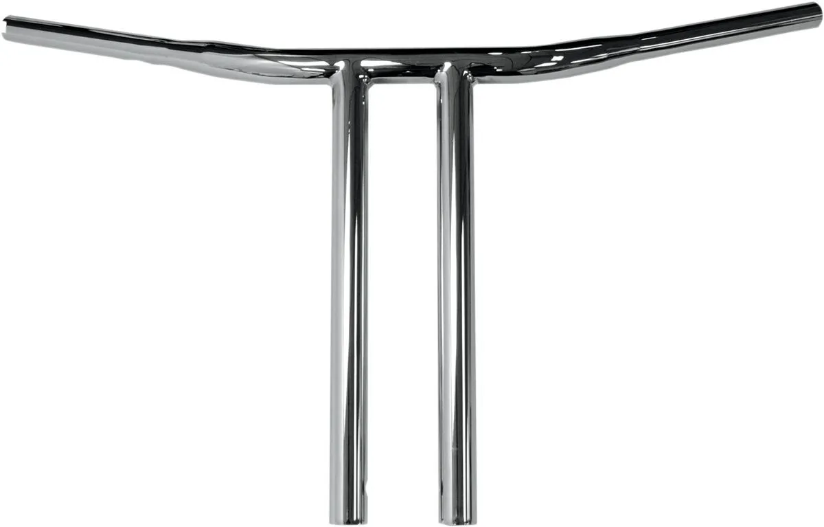 Pullback/Sweep: 12,5 cm (5") Color/Finish: Chrome Features: Notched for Throttle By Wire| Straight Riser Type/Bend: Buffalo| T-Bar Width: 73,5 cm (29") Units: Each Base Finish: Chrome Handlebar Diameter: 32 mm (1-1/4") Material: Steel End Rise: 35,5 cm (14") Base Color: Silver Product Name: Handlebar Center Width: 23 cm (9")