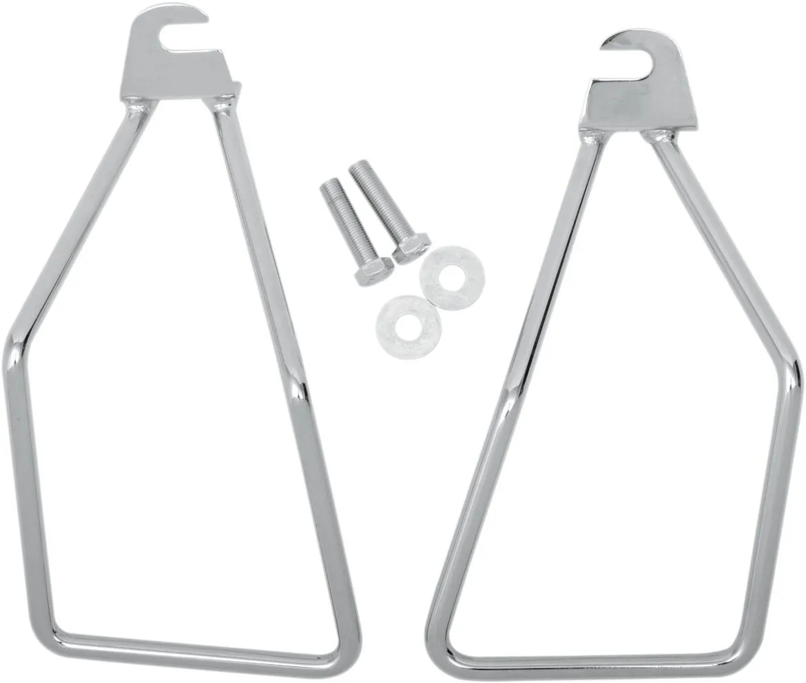 ×Chrome-plated steel brackets hold throw-over saddlebags away from brake caliper and swingarm