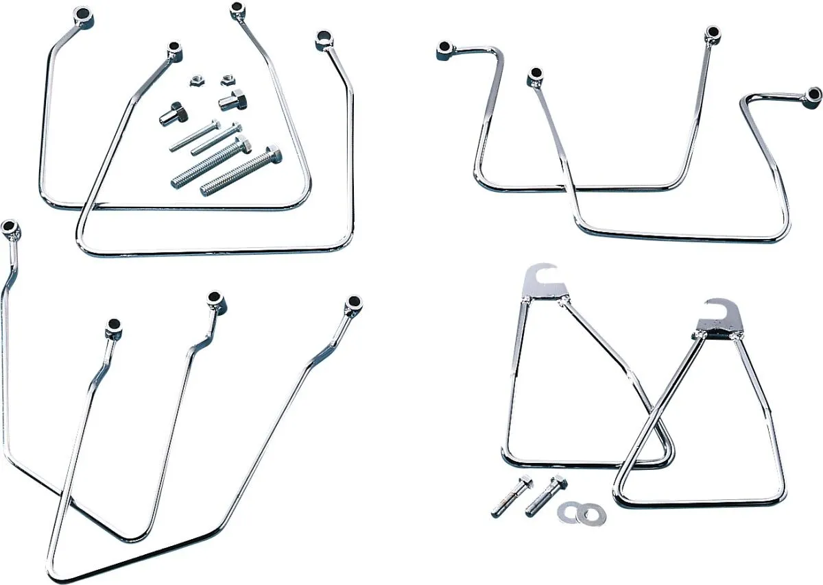 ×Chrome-plated steel brackets hold throw-over saddlebags away from brake caliper and swingarm