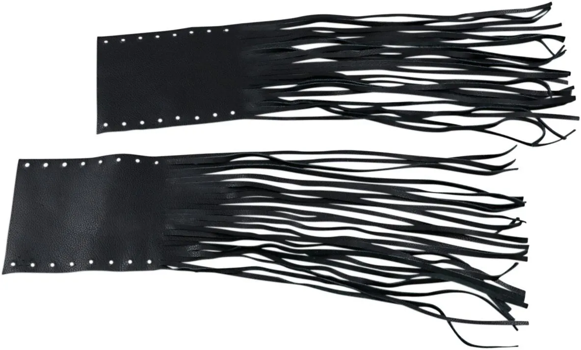 Black leather Grip Covers With 12" L fringe for grips on 1" bars