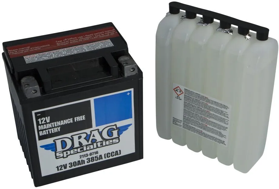 Supplied with separate Acid Pack. Fill and charge before installing.
