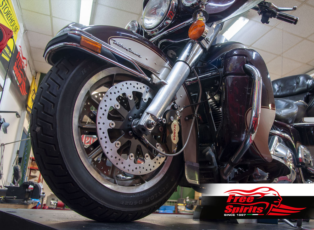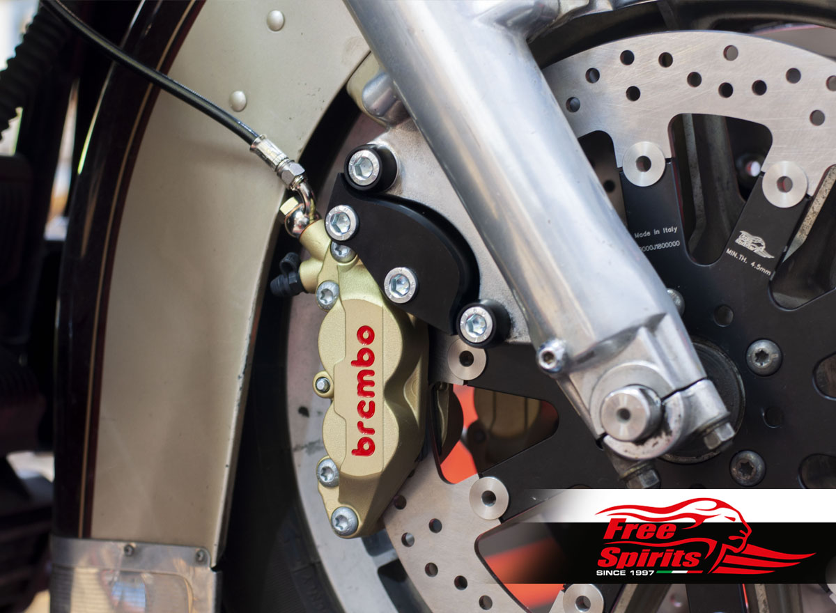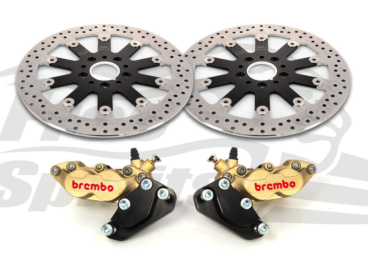 • Free Spirits Complete 4 Piston Caliper & 320mm Rotors Kit In Gold For Harley Davidson Touring Models (203914GK)