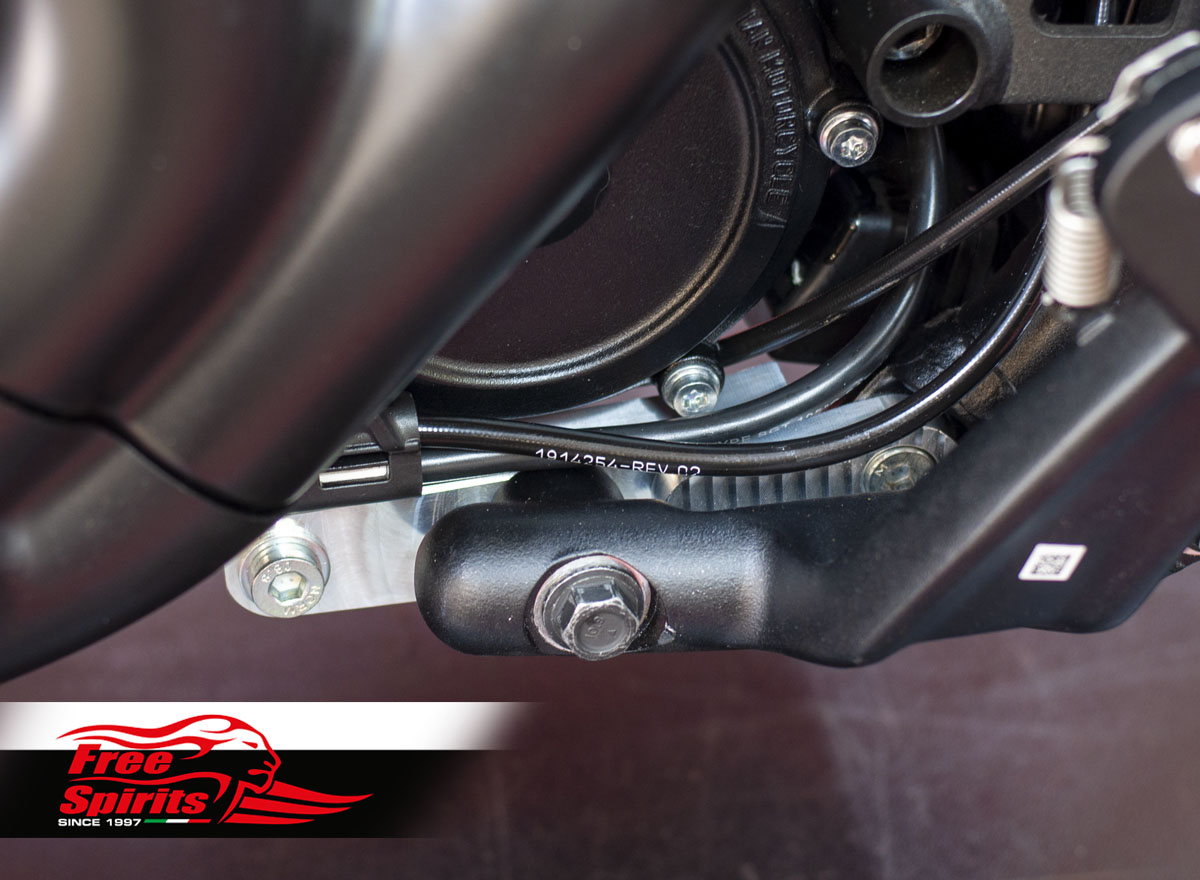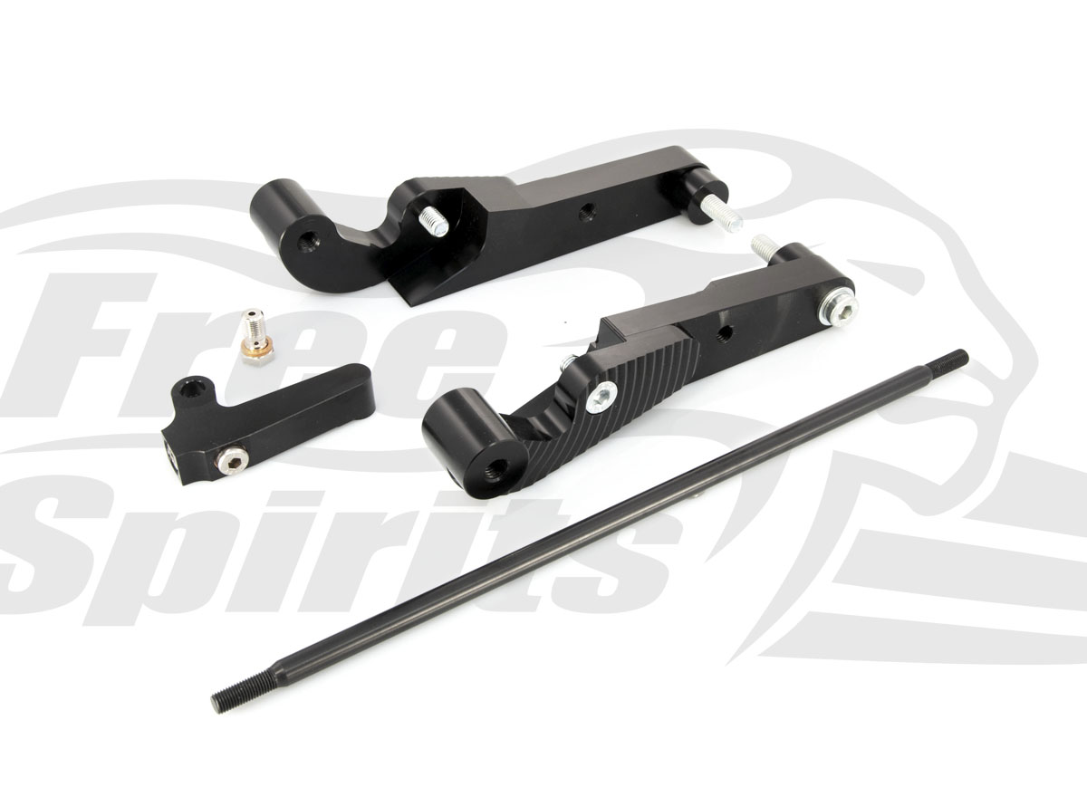 No need to replace brake line, comes with black anodized aluminium plates, shifter rod and adapter kit for the original brake line.