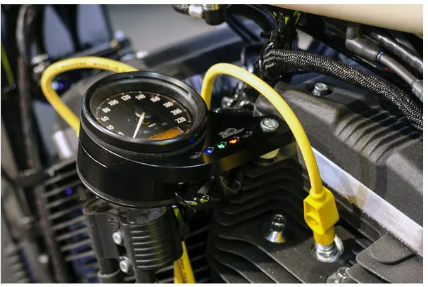 Utilises the original speedo, with new billet aluminium surround/bracket incorporating the original warning lights.