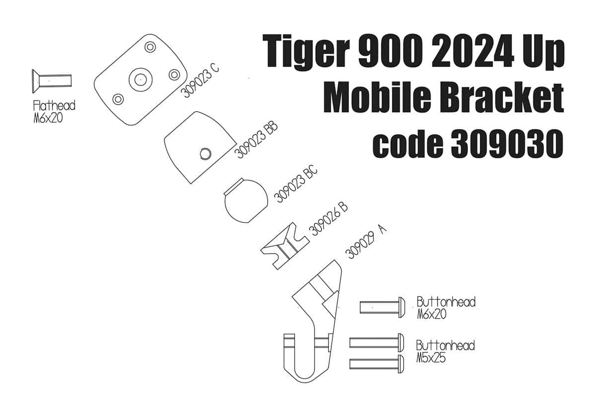 ×The 309030 kit is a new smartphone holder specifically built for the new Tiger 900 2024 up, its central position above the instruments allows safe driving without taking your view away from the road and its angle allows excellent visibility while driving even on sunny days.