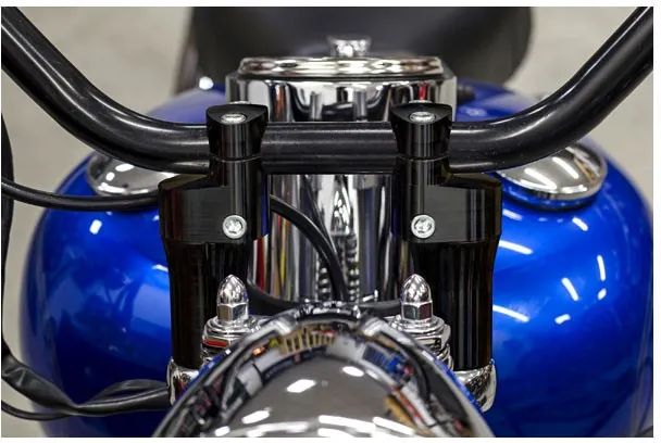 ×These new and innovative “bolt on” riser allow the use any 1” handlebars with the standard 3.5" bolt center, without replacing original top trees.