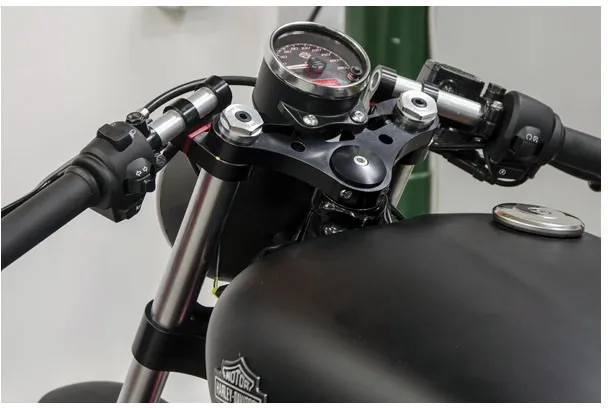 ×This kit, made in lightweight CNC machined billet aluminium for Harley Davidson Street, replaces top and bottom triple clamps.
