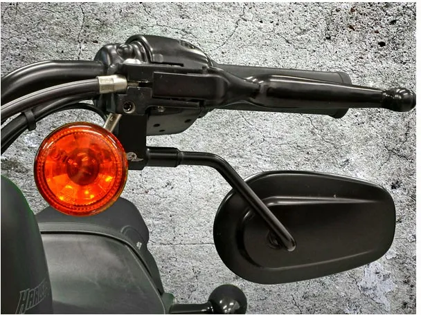 ×This simple bracket relocates the OEM or aftermarket mirror under the handlebar for a more aggressive and uncluttered look.