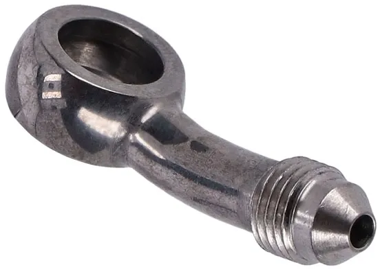 ×High polished stainless steel. 20 degrees Banjo fitting, 10mm - 3/8". Fits straight to Goodridge brake line kits with 3/8"-24 AN-3 threaded hose ends.