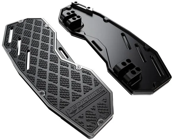 • With our unique design and highest quality, made from high-grade billet aluminium and CNC milled, they are more robust and lighter than other floorboards on the market—our new HeinzBikes® PERFORMANCE Floorboards.