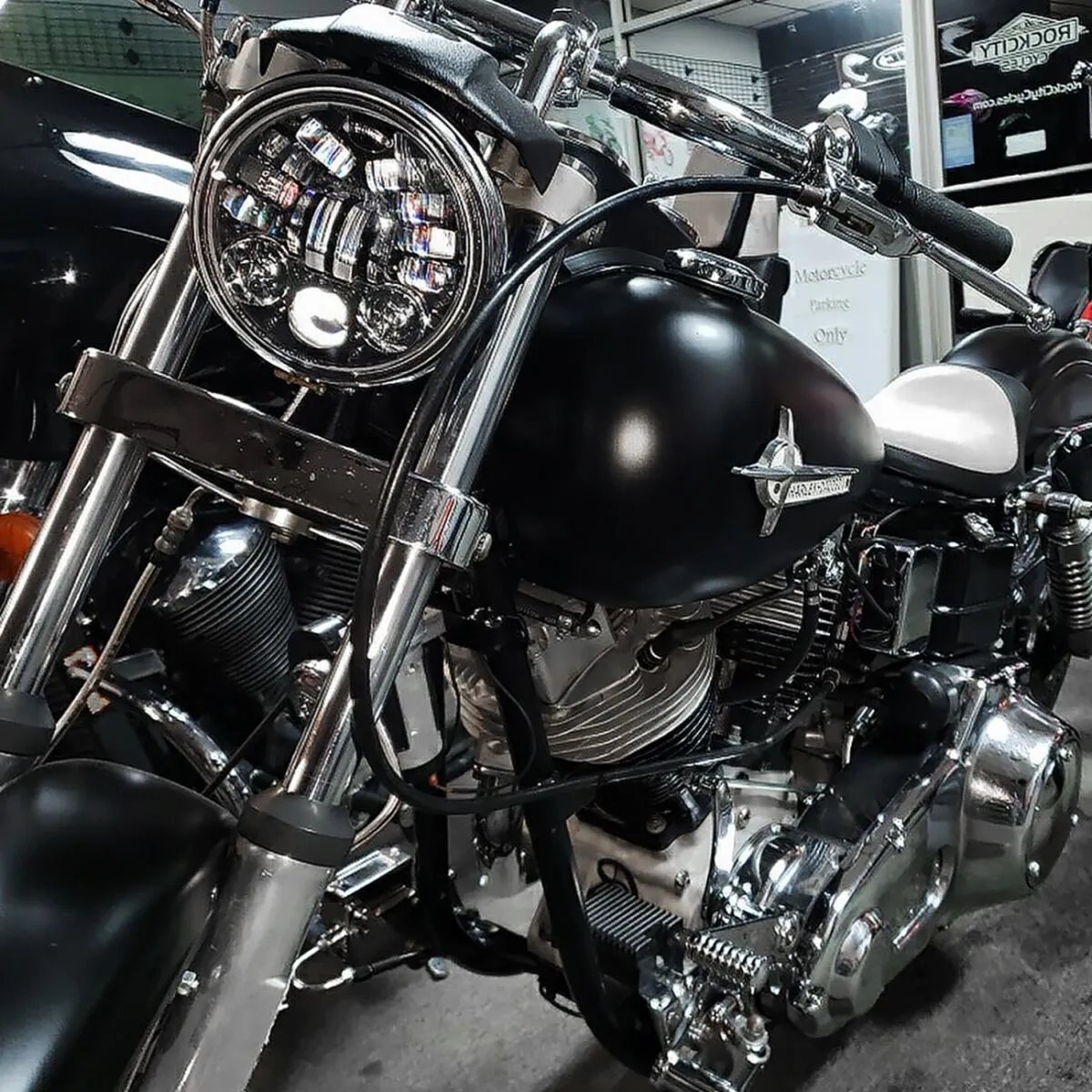 Use J.W. Speakers website using their Motorcycle Garage to enter the Make, Model & Year of your motorcycle and find the headlight and mounting hardware that works with your bike.