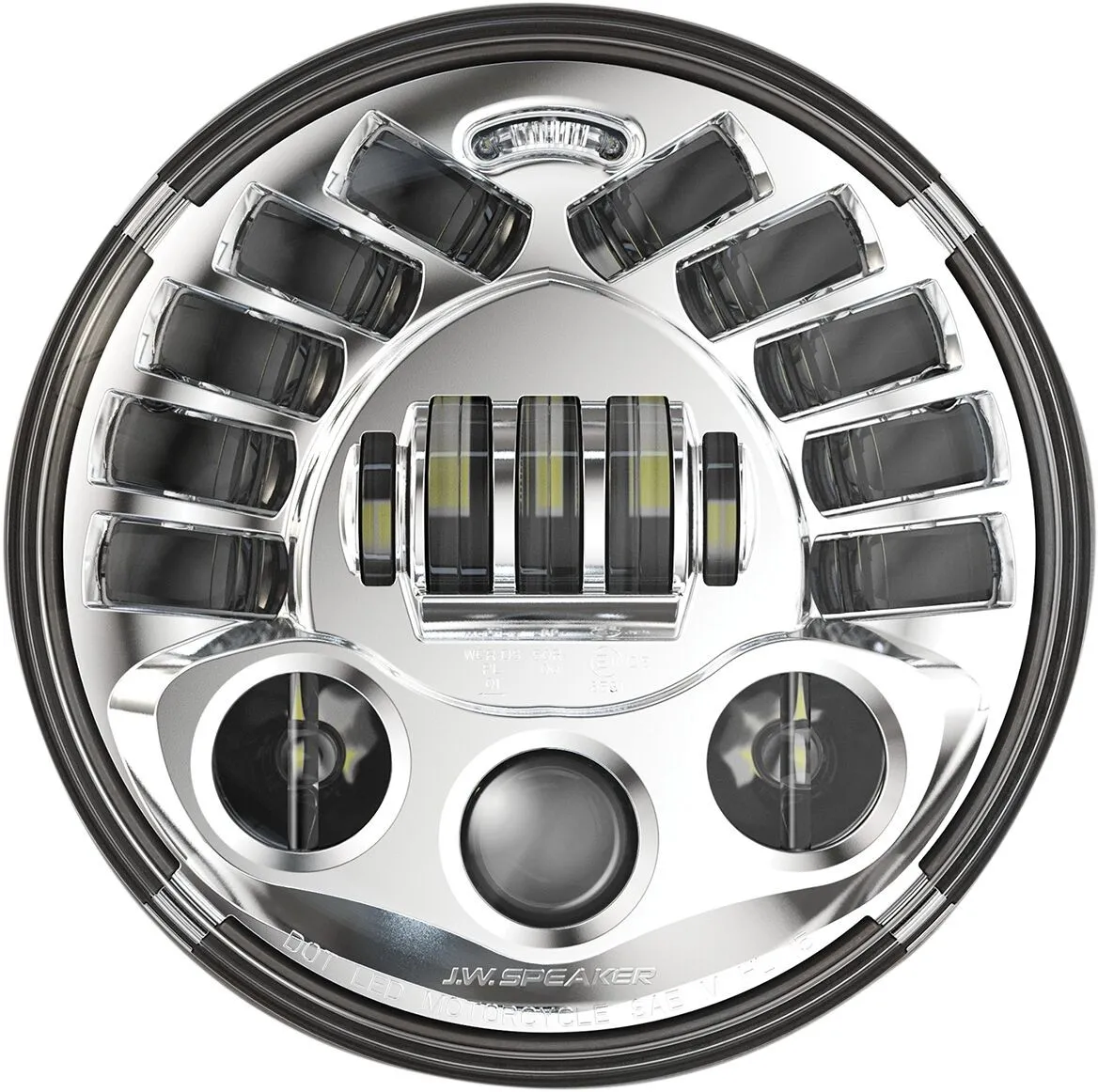 The Model 8790 Adaptive 2 motorcycle LED headlight calculates bank angles on a real-time basis using proprietary technology and on-board sensors, automatically directing the light array up or down as the motorcycle leans. This additional illumination fills in the gaps that traditional headlights can’t.