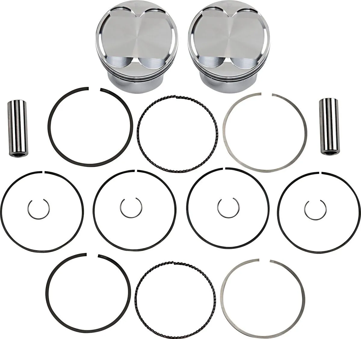 Piston Average Weight: 254 grams Piston Volume: 2.59 cc Two cylinder piston kit. Includes: • 2x Pistons • 2x Ring Sets • 2x Wrist Pins • 4x Circlips