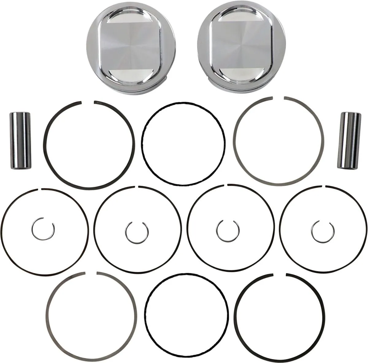 Does not fit liquid-cooled heads Piston Average Weight: 355 grams Piston Volume: 5.00 cc Two cylinder piston kit. Includes: • 2x Pistons • 2x Ring Sets • 2x Wrist Pins • 4x Circlips