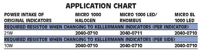 NOTE: When using micro 1000 DF and a light control bulb, one additional resistor at 33 ohm (PART 123.953) for the rear light and one additional resistor at 7,5 ohm (PART 123.952) for the brake light are required.