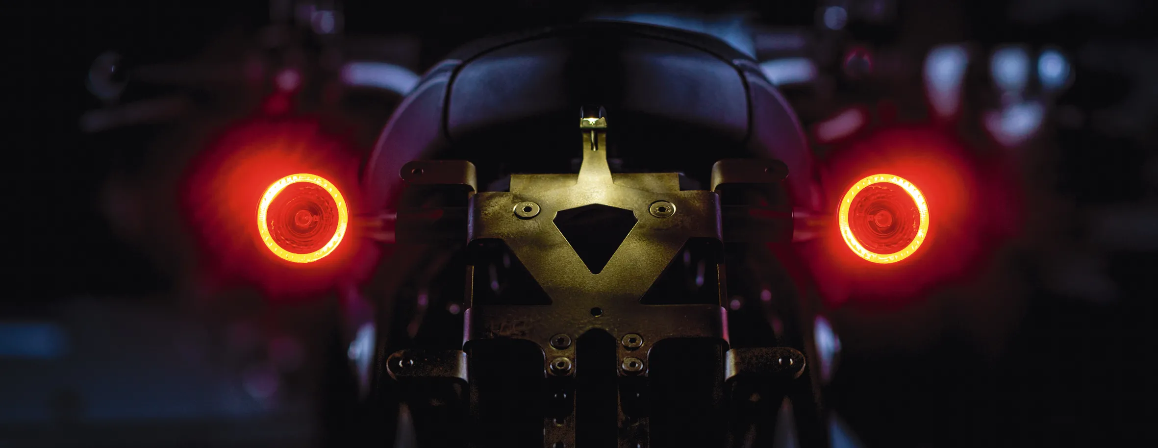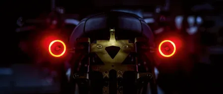 The light of the continuously glowing red rings give the tail of the motorcycle a spectacular look. When breaking, the light circle of the break light shines strong and clear.
