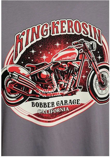 ×This King Kerosin t-shirt brings the raw charm and freedom of the open road straight to you. The striking "Bobber Garage California" artwork celebrates the culture of custom bikes and the passion for powerful machines. Made from pure cotton, this shirt not only offers an eye-catching design, but also the highest level of comfort. With its classic round neck and comfortable regular fit, this t-shirt ensures that you are both stylish and comfortable on the go. A subtle logo detail on the hem complements the design and rounds it off perfectly.