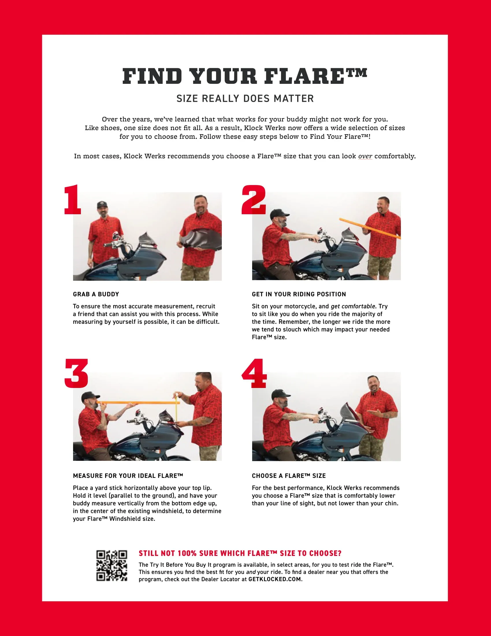 INCLUDED: Flare Windshield, Kustom Mounting Blocks, Hardware.