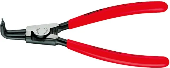 ×Tips: 90. Bore diameter: 19-60mm. Overall diameter: 170mm. Weight: 132 gram. Used to install and remove 19-60mm external retaining rings. Straight tips with 1.8mm tip diameter. Body and the solid non-slip tips are manufactured from oil hardened forged chrome vanadium steel. Comes with plastic coated handles, a polished head and black phosfate coating.