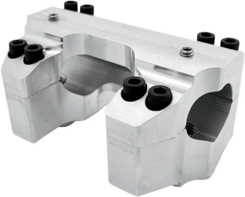 Fit under the stock cover. Include all necessary installation hardware. CNC-machined from 6061 T-6 aluminum with a raw finish. Tapped for 1/2" -13 riser bolts. Top clamp has tapped holes to lock handlebars in place. Come with setscrews. Made in the U.S.A.