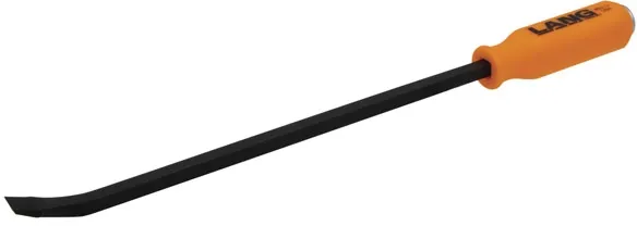 ×17" (43.2cm) long. Curved pry bars manufactured from a high carbon content steel alloy with an orange nylon grip. The tip is angled for best access and leverage. With steel strike cap that is directly connected to the steel of the bar itself. Exceeds ASME (American Society of Mechanical Engineers) standards.
