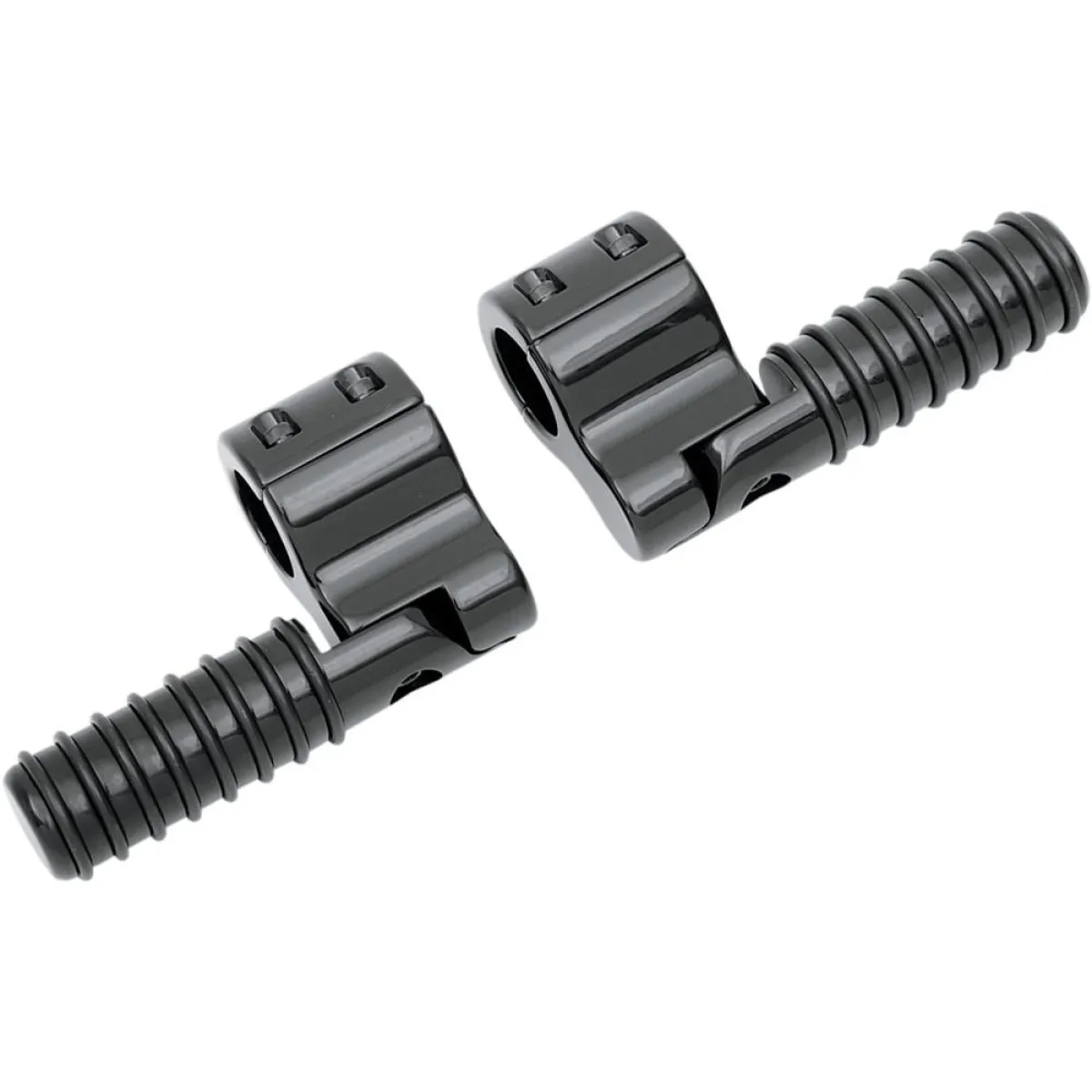 This high quality billet aluminium clamp-on foot peg will fit any engine guard with 1 1/4" o.d. (includes set of 2 Pegs / left & right). Looks great on a black powder coated LINBAR, Lindby black UNIBAR or any black highway bar with 1 1/4" o.d.