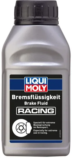 ×Language label D-GB. Synthetic brake fluid for extreme operating conditions. Contains inhibitors to prevent the corrosion of metallic brake components and reduce oxidation at increased temperatures. Outstanding wet and dry boiling point, ensuring safe braking even after the absorption of some moisture over a period of use. Special additives help prevent the build-up of vapor bubbles. Well-suited for use with all disk and drum brake systems, as well as clutch systems for which a synthetic brake fluid of this quality is prescribed. Specifications & approvals: FMVSS 116 DOT 3, FMVSS 116 DOT 4, FMVSS 116 DOT 5.1, ISO 4925 Class 3, ISO 4925 Class 4, ISO 4925 Class 5.1, SAE J 1703, SAE J 1704. Note: For road use Racing Brake Fluid must be changed completely after 12 months maximum. Note: Brake fluid is hygroscopic (attracts water) and must be kept in sealed containers. - Suitable for use in ABS brake systems - Can be used with all conventional brake fluid bleeding devices - Can be mixed with other synthetic brake fluids - Excellent elastomer compatibility - Excellent low temperature behavior - Extremely high wet and dry boiling points - Outstanding protection against the formation of steam bubbles - Assures a high degree of lubricating action on all moving components in the hydraulic brake circuit - High thermal stability - Excellent viscosity/temperature properties - ERBP > 320 C SAE J1703/1704 - ERBP, wet > 195 C FMVSS 116