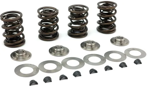 ×Includes titanium top collars, steel lower collars, valve springs and a valve key set. Machining required to lower the valve guide to avoid interference with the top collar. Special 3-spring design with interference fit to reduce harmonics and control spring surge. Springs have more pressure than stock. Pressure: 180lbs - 1.600" / 365lbs -1.100" / 415lbs - .950". Coil bind: .850"