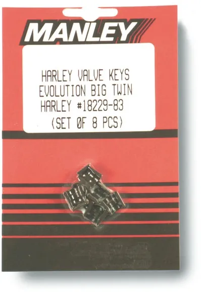 ×Stock style replacement. Heat treated, black oxided and 100% machined from a special chromoly material. Each valve keeper is designed to work with stock, Manley and most aftermarket top collars. Includes 4 pairs of valve keepers, to service one engine.