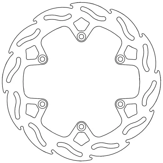Model: Flame Style: Solid-Mount Color/Finish: Stainless Steel Product Name: Brake Rotor Shape: Contour Thickness: 4 mm (5/32") Inside Diameter: 110,0 mm Braking Surface: Drilled Material: Stainless Steel Units: Each Bolt Hole Circle: 125,0 mm Bolt Pattern: 6 Hole Outside Diameter: 220 mm (8-21/32'') Type: One Piece (Fixed)