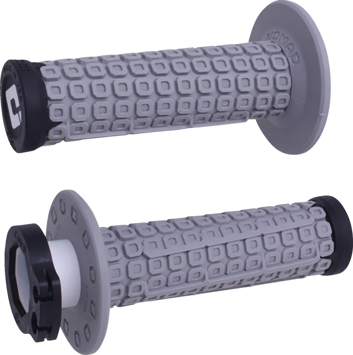 Graphic: ODI Texture: Medium Mount Type: Lock-On Style: Cam| Closed End| Flange| Universal| Waffle Product Name: Grips Color/Finish: Black| Flat| Gray Base Color: Gray Model: Nomad Base Finish: Flat Material: Composite For Handlebar Diameter: 22 mm (7/8") Units: Pair