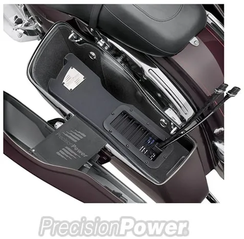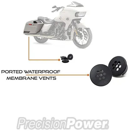 ×Are you looking to add bass to your Harley-Davidson without all the headaches of matching up an amplifier or, even worse, taking away the saddlebag structure's integrity? Precision Power has created the SBW powered saddlebag drop-in subwoofer, a perfect marriage of the custom enclosure, subwoofer, and built-in digital amplifier that allows you to avoid complicated mathematics. You'll love the powerful impact this enclosure adds to your favorite tracks, and you'll rest easy knowing that you're getting state-of-the-art performance from Precision Power.The SBW saddlebag speaker comes equipped with a custom subwoofer paired with a passive radiator to increase bass response with a built-in 300-watt digital amplifier. Neodymium Magnet Motor enhances the subwoofer's motors' strength, it is also extremely light, which means more output and less weight. The sealed enclosure provides optimum sound quality, and the rugged rotational molded ABS plastic protects them wherever you ride or travel. High- and low-level adjustment switches allow you to connect it to any configuration, the system plug-n-plays behind either OE Harley-Davidson radios or even aftermarket Apple CarPlay & Android Auto replacement radio.With all this new bass comes new technology. Well Sorta. The Product Development team came up with a solution to port bass coming from your saddles without destroying the structure of each saddlebag. Each subwoofer kit comes with ported grommets equipped with a unique membrane all