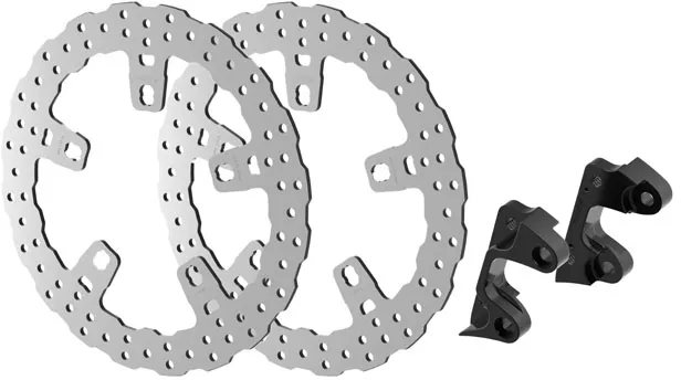 ×Extra large 13" / 330mm diameter floating front brake rotor, with caliper adapters.