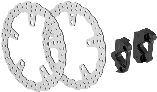 ×Extra large 14" / 355mm diameter floating front brake rotor, with caliper adapters.