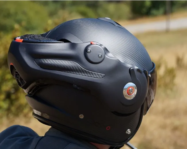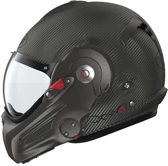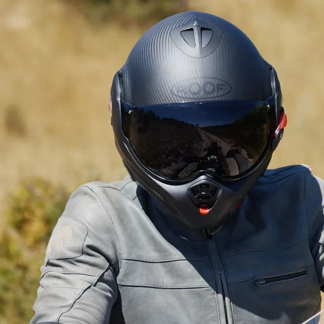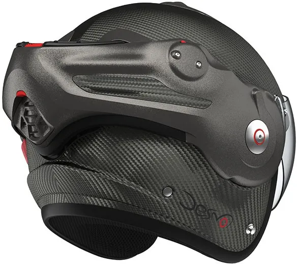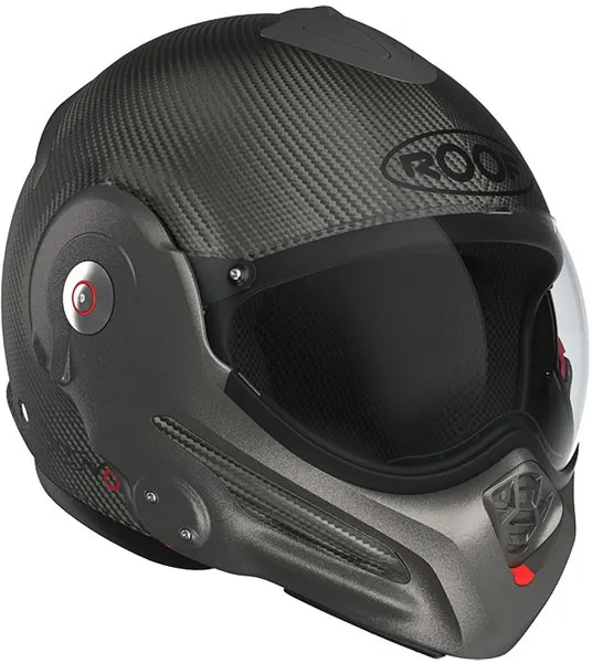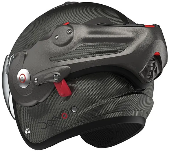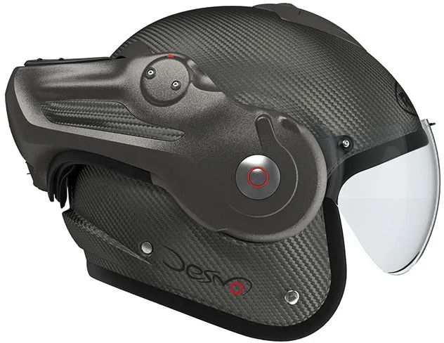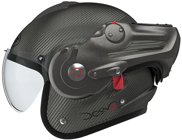 ×The ultimate alliance of a remarkable design, from mattnoble and state-of-the-art engineering. The ROOF concept Desmo patented revolutionized the helmet versatile thanks to his visor automatically articulated by the rotation of the chin tree to enjoy optimal jet comfort and in full face. It is big back in this latest version Desmo 3 Carbon, ultra light and equipped with a series of a visor Last generation photochromic ensuring progressive and automatic sun protection. Desmo 3 is also distinguished as the only one helmet versatile Roof having a central unlocking of the chin tree. Cover in fiber carbon offering lightness, strength and elegance Standard equipped with a pilot visor original Roof photochromic for automatic evolutionary solar protection Venturi-effect vents: 4 air intakes and 2 air extractors Comfort suitable for eyeglass wearers Certified Jet and Full face European Standard ECE 22.06