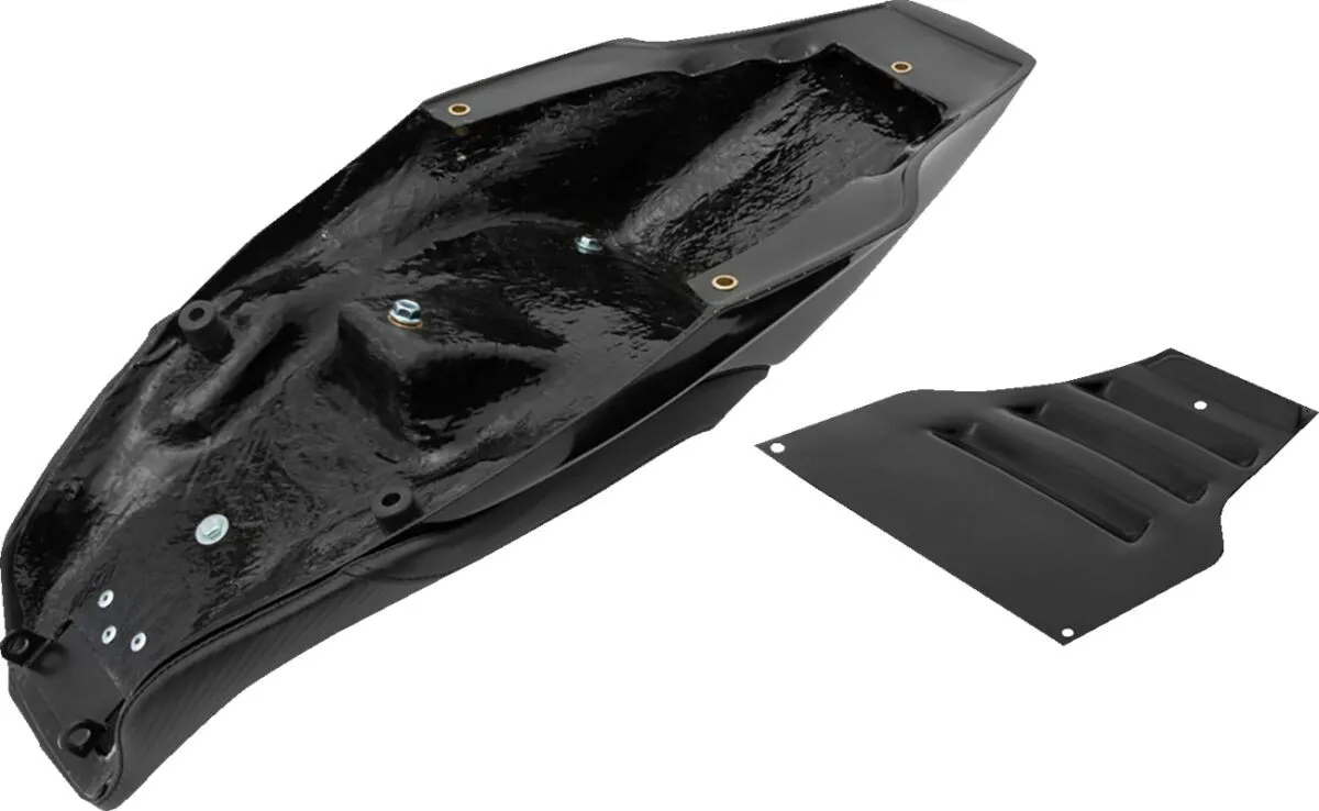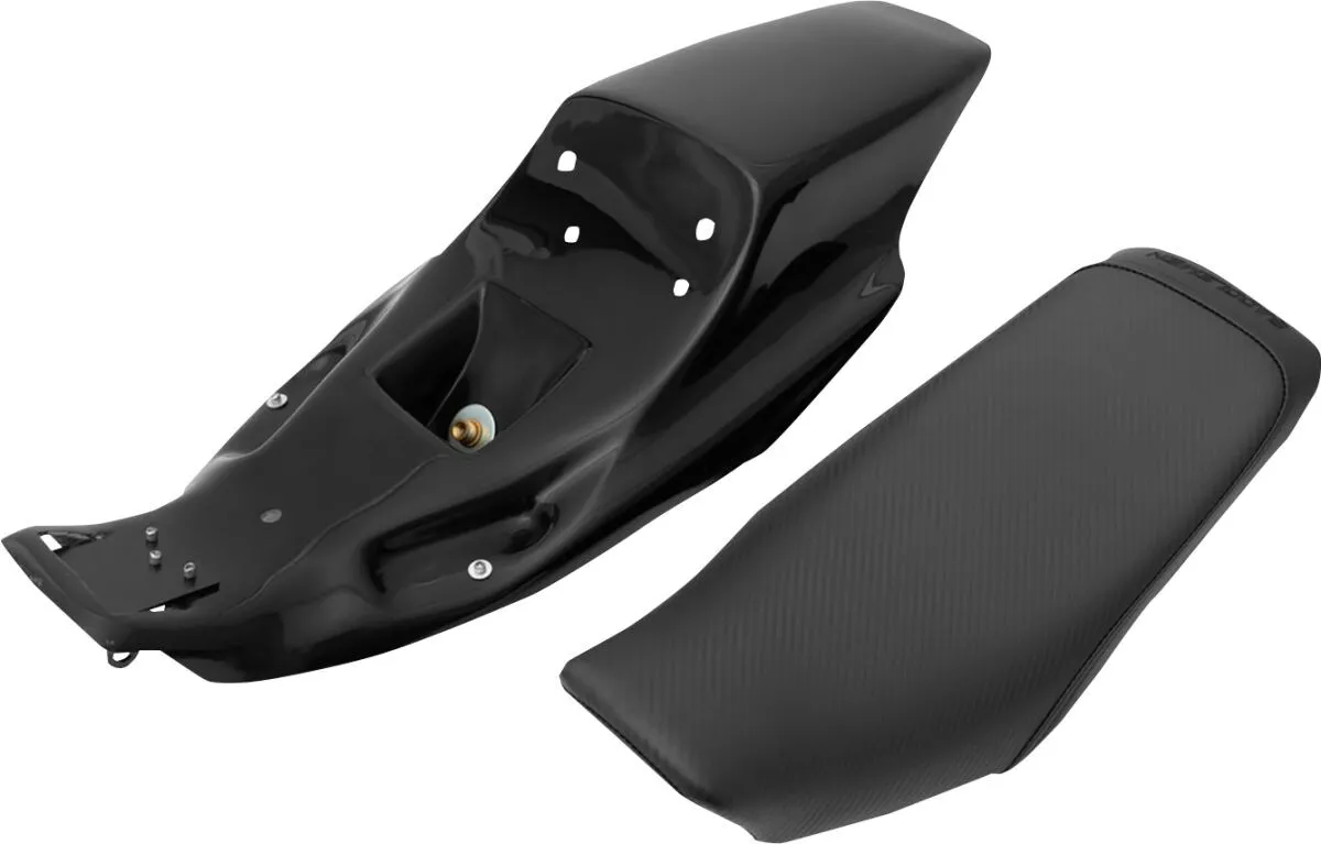Carbon Fiber (CF) kit includes seat with a high-tech carbon-fiber look seat cover