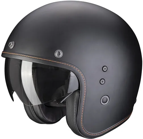 The Scorpion Belfast is an all that retro-classic! The answer to who dream for a perfect marriage of retro and modern style. Designed to seduce you with the philosophy of `attention-to-detail' finishings and simple fashion quality. Made of fiberglass, included a sun visor which can easily be clicked down. Comfortable fitment to retain you with Scorpion's supreme quality leather and a Kwikwick3 material that is hygienic and moisture wicking. The cheek pads are completely removable and can be washed easily. The helmet is ECE R22.06 approved and has micro buckle closure, you can put the helmet on and off in no time.