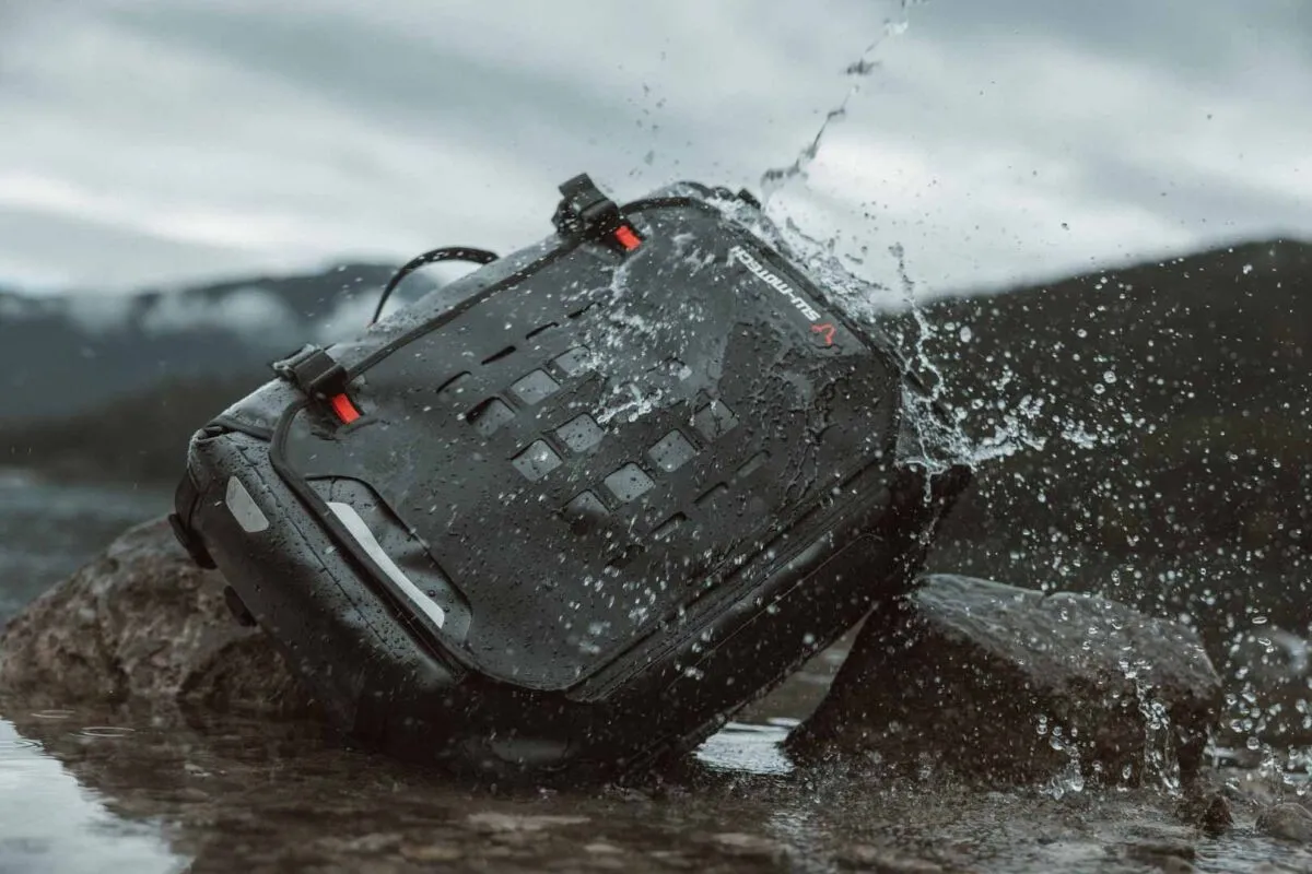 The SysBag WP L is designed for off-road use without exception: the belt buckles of the front compartment are deliberately attached to the top so that no branches can get caught on narrow paths. The outer edges of the bag are covered with robust Hypalon material, which provides additional protection in the event of a fall. With the four compression straps on both sides, the bag can be lashed to form a compact unit, even with a small load.